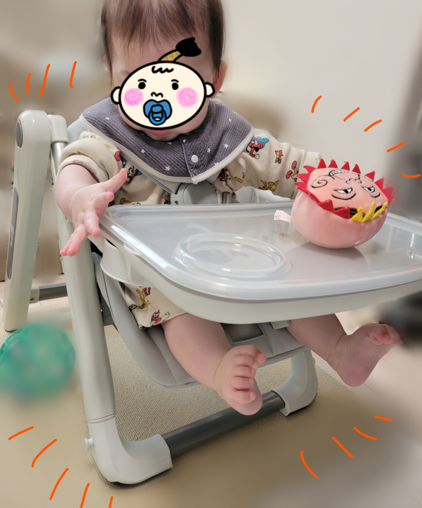 ずっとお膝の上で食べさせていましたが、さすがに大変なので6ヶ月過ぎてベビーチェアを買いました。